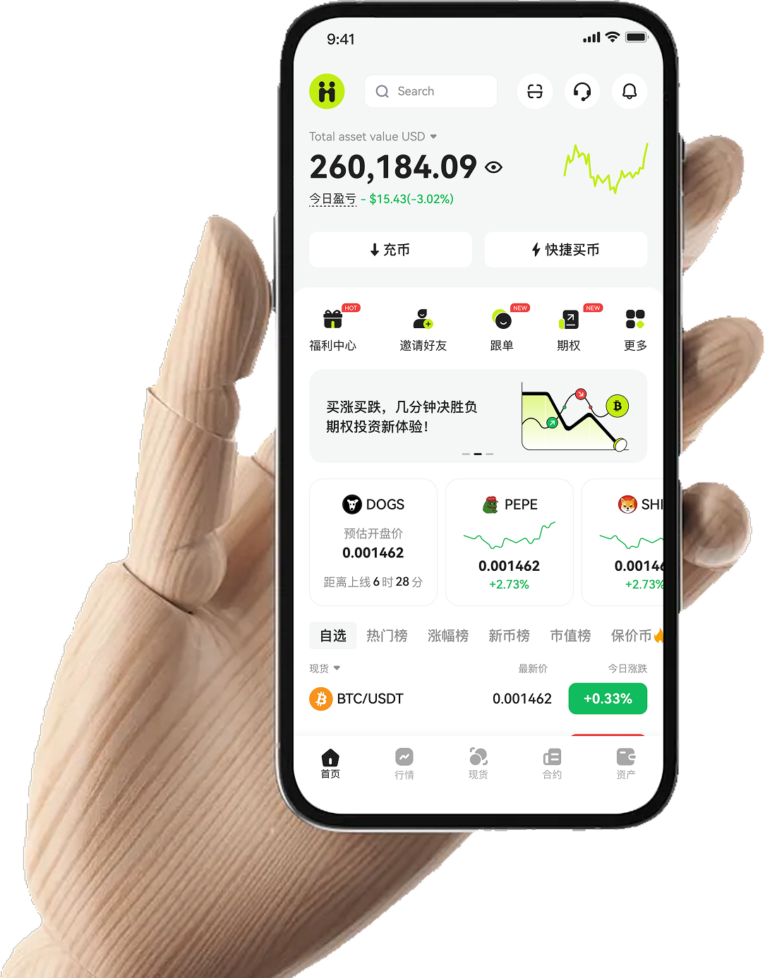Go long or short — win or lose in 5 minutes. A brand-new options trading experience!